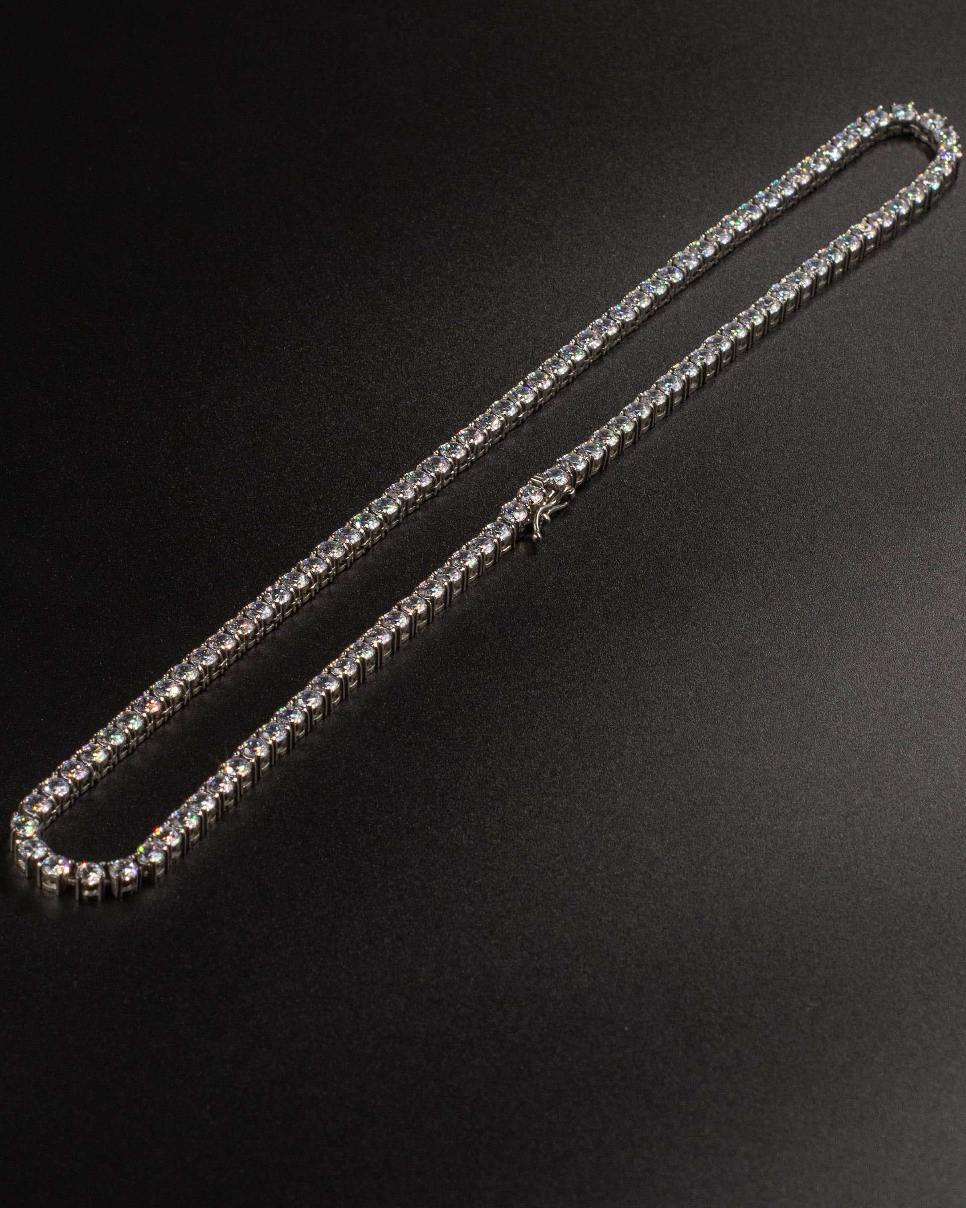 A timeless essential in fashion, the 4mm Round Cut Tennis Chain is the perfect accessory, regardless of whether you're dressing up or down, and is the perfect drip to wear solo, or layered up.